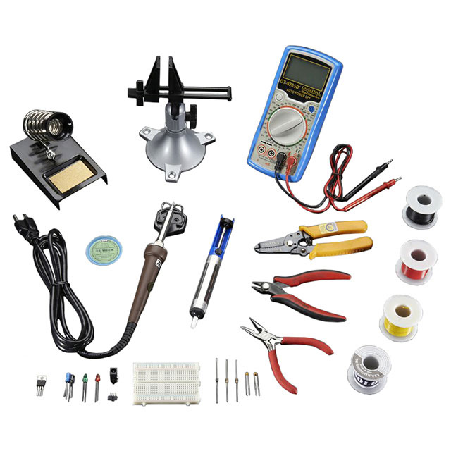 Contenuto Breadboard, Cutter, Desoldering Tool, Holder, Multimeter, Plier, Power Pack, Soldering Iron, Solder, Vise, Wire Stripper