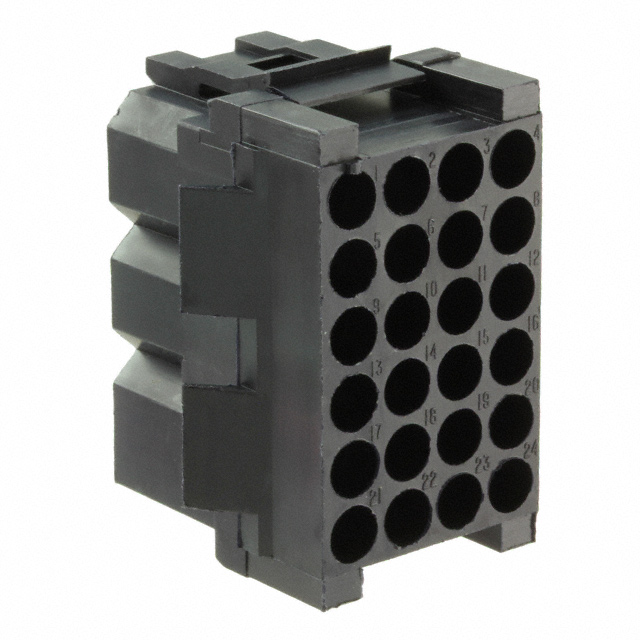| Tipo di fissaggio | Latch Holder | Descrizione dettagliata | 24 Position Rectangular Housing Connector Receptacle Black 0.200" (5.08mm) |