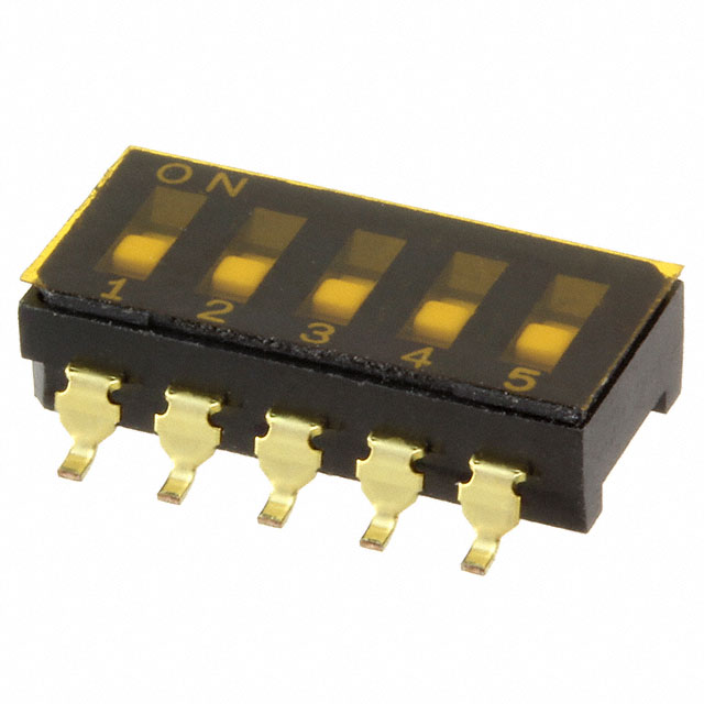 Descrizione dettagliata Dip Switch SPST 5 Position Surface Mount Slide (Standard) Actuator 100mA 6VDC Valutazione attuale 100mA
