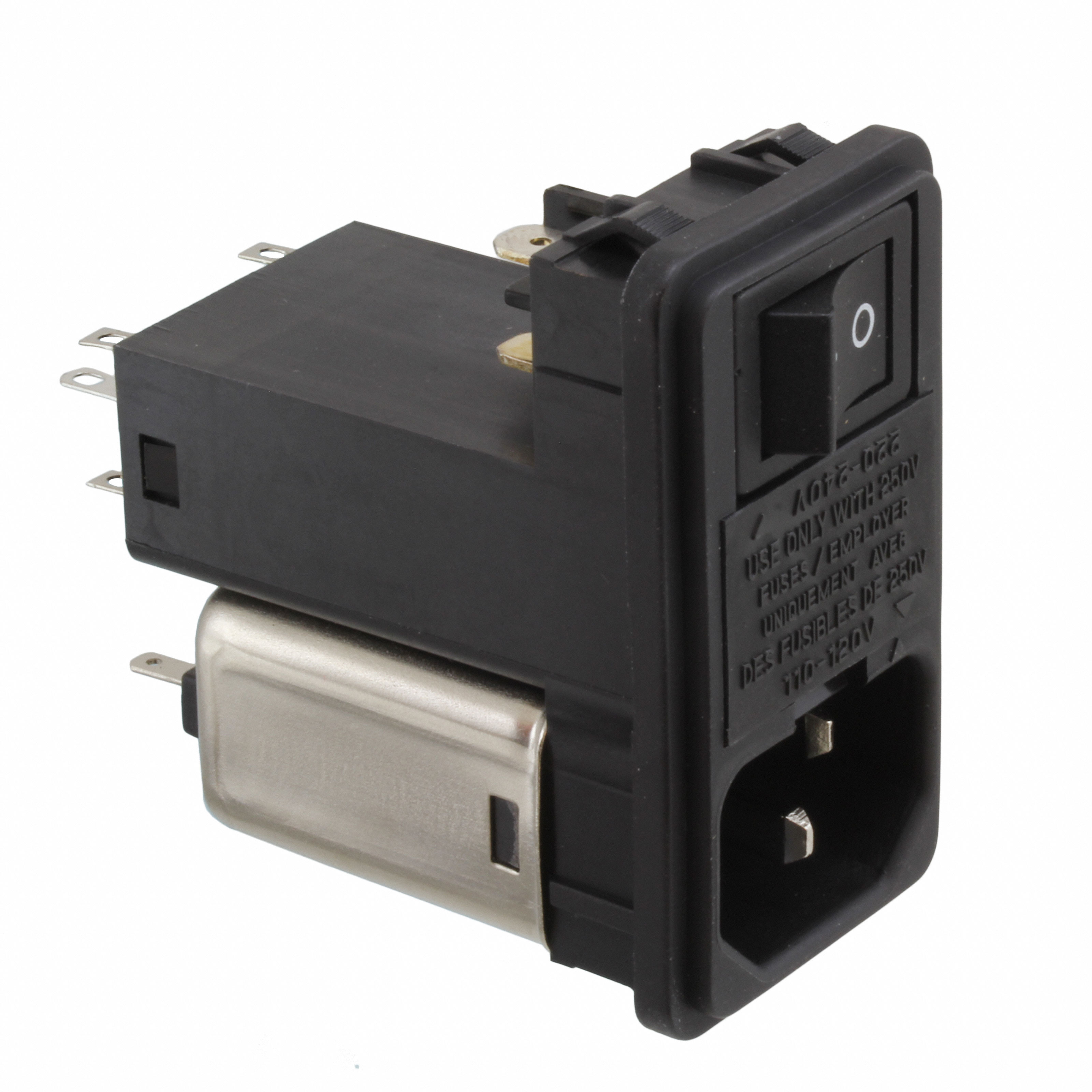 Descrizione dettagliata Power Entry Connector Receptacle, Male Blades - Module IEC 320-C14 Panel Mount, Snap-In Corrente - UL -