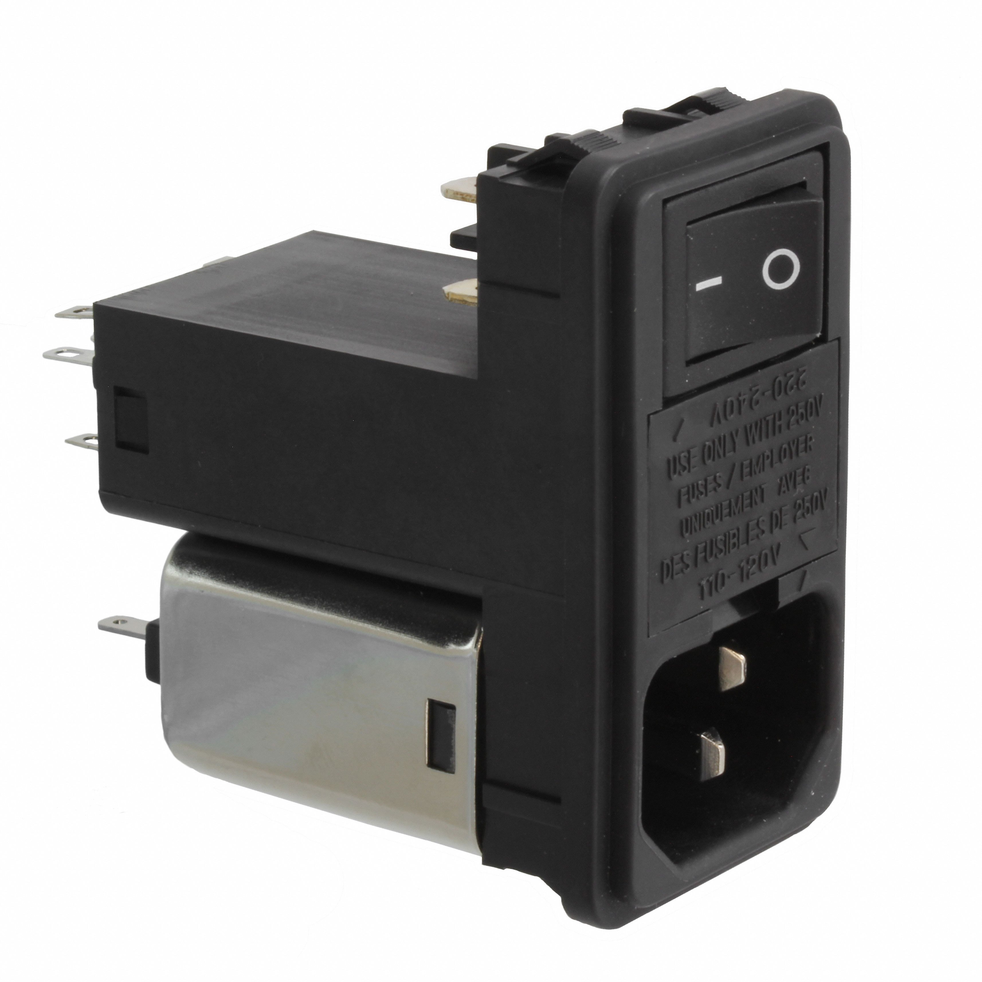 Descrizione dettagliata Power Entry Connector Receptacle, Male Blades - Module IEC 320-C14 Panel Mount, Snap-In Corrente - UL -