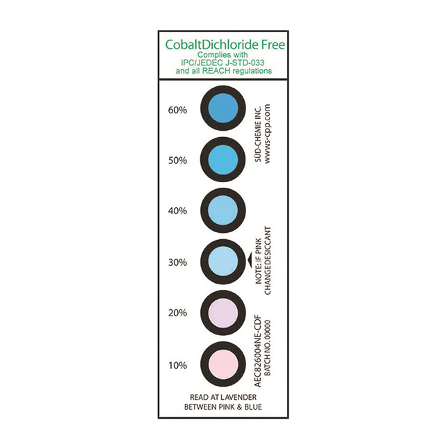 Descrizione HUMIDITY INDICATOR 6 SPOT 200PCS Stato Lead senza piombo / RoHS Non applicabile / Non applicabile