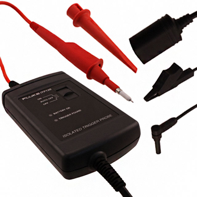 include Battery, Ground Lead with Hook Descrizione dettagliata Trigger Probe, Optically Isolated 50kHz 48.000" (1219.20mm) Gray Oscilloscope Probe Test Lead 10M Input Resistance CAT II 600VRMS