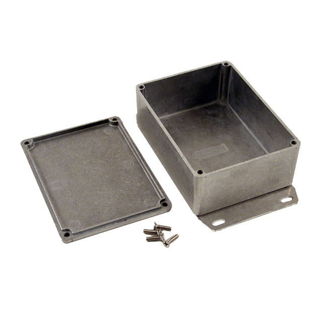 Descrizione dettagliata Box with Mounting Flange Metal, Aluminum Unpainted Cover Included 4.335" L x 3.232" W (110.11mm x 82.09mm) X 1.727" (43.87mm) Design Cover Included