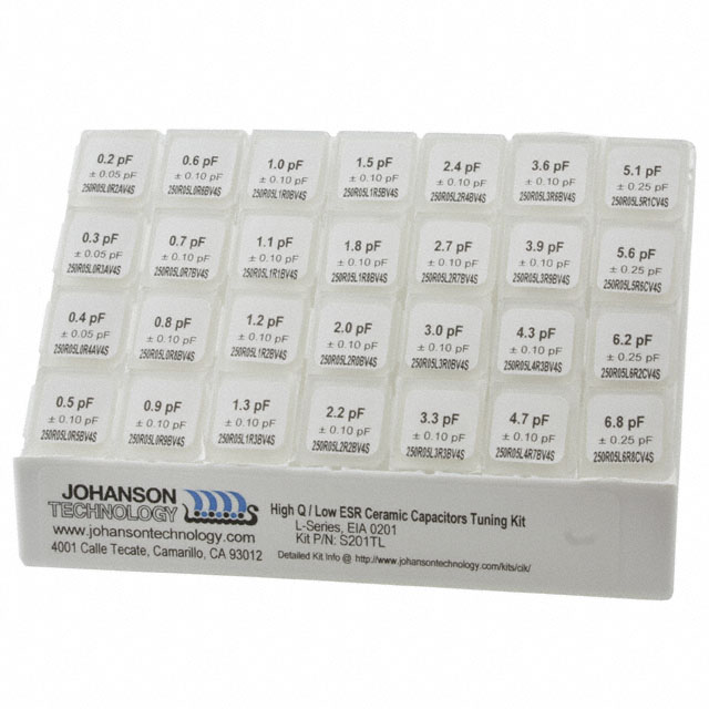 Caratteristiche High Q, Low Loss Descrizione dettagliata Ceramic Capacitor Kit 0.2pF ~ 6.8pF 25V Surface Mount, MLCC 1400 Pieces (28 Values - 50 Each)