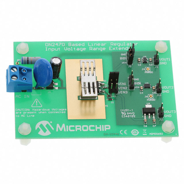 Descrizione dettagliata DN2470, MCP1754, MCP1755, MCP1790 1 - Single Channels per IC Positive Fixed Linear Voltage Regulator Evaluation Board Corrente - Uscita 10mA