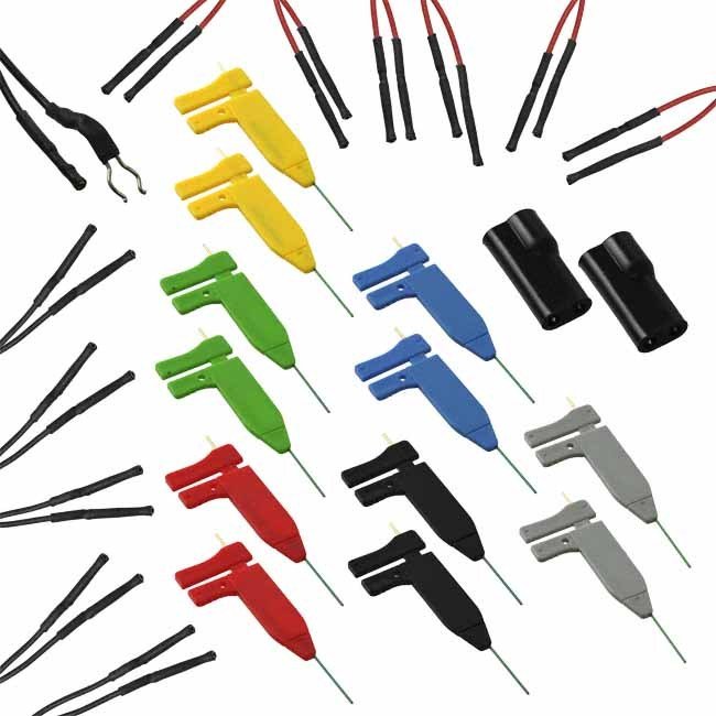 Stato senza piombo / Stato RoHS Lead free / RoHS Compliant Descrizione dettagliata Nano Pincer To Socket, Round, 0.025" (0.64mm) Test Lead 25VDC 12 Leads, Black and Red, 12 Clips, Multiple 1 Ground, Black